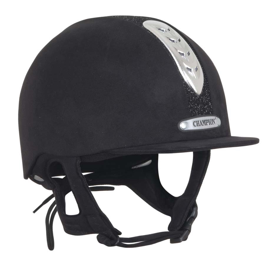 Junior X-Air Dazzle Plus has a lightweight injection moulded ABS shell, a durable synthetic suede with dazzling glitter centre panel and a 4-point heat formed synthetic suede harness.